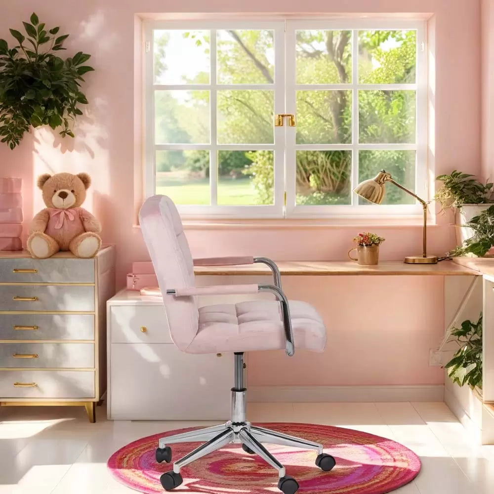 Scaunele de birou din catifea pentru copii sunt alegerea ideală pentru părinții care doresc să le ofere micilor școlari un mediu de studiu de înaltă calitate, adaptat atât fetelor, cât și băieților. Designul versatil și elegant, alături de materialele de calitate superioară, transformă acest scaun într-un simbol al grijii parentale și al angajamentului față de educația celor mici. Tapițeria din catifea, cunoscută pentru textura sa luxoasă și senzația foarte plăcută la atingere, creează o experiență de studiu rafinată, potrivită pentru orice tânăr elev, indiferent de preferințele sale estetice. Aceste scaune de birou din catifea pentru copii sunt așadar un simbol al respectului față de formarea academică timpurie și a grijii părintești pentru viitorul copilului, lansând o invitație la studiu prin intermediul unui echilibru perfect între eleganță, funcționalitate și confort. Tapițeria din catifea, recunoscută pentru textura sa moale și luxoasă, conferă o notă distinctă spațiului de studiu, transformându-l într-un loc dedicat excelenței academice. Acest scaun este conceput pentru a sprijini procesul de învățare printr-un design ergonomic care asigură o experiență confortabilă, sigură și estetic plăcută. Scaunul de birou din catifea pentru copii nu este doar un element funcțional dedicat studiului, ci și o piesă de design care poate servi ca scaun accent în orice spațiu, subliniind ideea de delicatețe a decorului. Prin combinația materialelor de clasă superioară cu detaliile estetice contemporane și proporțiile bine echilibrate, acest scaun își depășește rolul tradițional, devenind un punct focal al camerei. Pentru eleve, scaunul adaugă o notă de eminență camerei lor de studiu, combinând culorile și materialele într-un mod care atrage atenția. Pentru elevi, funcționalitatea practică a scaunului, mobilitatea sa fluidă, siguranța sporită prin eliminarea mecanismului de balansare și stabilitatea bazei cu cinci brațe, reprezintă caracteristici esențiale care le sprijină rutina de învățare. Un detaliu remarcabil al acestui scaun este reprezentat de cusăturile în carouri de pe șezut și spătar. Această caracteristică estetică nu doar că îmbogățește vizual designul, ci simbolizează ordinea, disciplina și eleganța, valori care se aliniază perfect cu obiectivele educaționale complexe. Modelul în carouri contribuie la formarea unei structuri mintale bine organizate, fiind o metaforă vizuală pentru importanța concentrării și a stabilității în procesul de învățare. În plus, cusăturile adaugă un strat suplimentar de durabilitate și întăresc tapițeria, garantând rezistența scaunului în decursul utilizării zilnice. Cusăturile în carouri, o caracteristică esențială a designului, adaugă un plus de stil și semnificație. Acest model vizual clasic comunică disciplină, ordine și eleganță, valori esențiale pentru un parcurs academic reușit. Fie că este vorba despre o elevă care apreciază detaliile sofisticate sau un elev care preferă un stil curat și bine definit, aceste cusături se potrivesc perfect cu ambele perspective, consolidând estetica scaunului. În plus, aceste detalii îmbină frumos aspectul cu durabilitatea, garantând fiabilitatea unei piese de mobilier care rămâne impecabilă în timp. Cusăturile în carouri joacă un rol esențial în această dualitate funcțional-estetică. Ele nu doar conferă un aspect ordonat și manierat, ci și accentuează contururile geometrice ale scaunului, transformându-l într-o piesă ce atrage instant privirile. Acest detaliu decorativ este o alegere inspirată pentru părinții care își doresc un mobilier care să fie util, dar și să contribuie la ambianța generală pozitivă a camerei copilului. Acest scaun, prin detaliile sale estetice și ergonomice, devine atât o extensie a dorinței părinților de a oferi un mediu de studiu care îmbină luxul cu practicabilitatea, dar și o alegere a „elevului” a unui spațiu personal atractiv. Cusăturile în carouri, materialul din catifea și designul contemporan transformă spațiul de lucru într-un loc care inspiră excelența, concentrându-se pe sprijinirea dezvoltării copilului în toate aspectele vieții sale academice și personale. Structura superioară a scaunului, de tip monobloc, oferă un sentiment de siguranță și confort, încurajând elevii să se concentreze asupra învățatului. Pernele din burete de înaltă densitate, complet acoperite cu catifea fină, oferă un suport ergonomic atât pentru spate, cât și pentru șezut, reducând oboseala în timpul sesiunilor prelungite de studiu. Șezutul spațios și rectangular, decorat cu linii clare și cusături fine, îmbină estetica contemporană cu funcționalitatea, invitând la o postură relaxată, dar concentrată. Cotierele din oțel cromat, acoperite cu catifea asortată, adaugă un plus de confort, sprijinind poziționarea corectă a brațelor în timpul scrisului sau cititului. Designul acestora contribuie la menținerea unei posturi sănătoase, promovând obiceiuri corecte încă de la o vârstă fragedă. Cotierele din oțel cromat, acoperite cu catifea asortată, sunt concepute pentru confort suplimentar, ceea ce face acest scaun ideal atât pentru sesiunile scurte de scris, cât și pentru perioadele mai extinse de lectură. Acest detaliu funcțional este adaptat pentru a răspunde nevoilor ergonomice ale tuturor copiilor, indiferent de preferințele lor stilistice. Siguranța și funcționalitatea sunt priorități evidente în conceperea acestui scaun. Excluderea mecanismului de balansare elimină riscul de accidente, asigurând o poziție stabilă și verticală. Coloana reglabilă din oțel cromat permite adaptarea înălțimii, în timp ce baza cu cinci brațe și roțile multidirecționale cu design în două tonuri oferă stabilitate și mobilitate 
