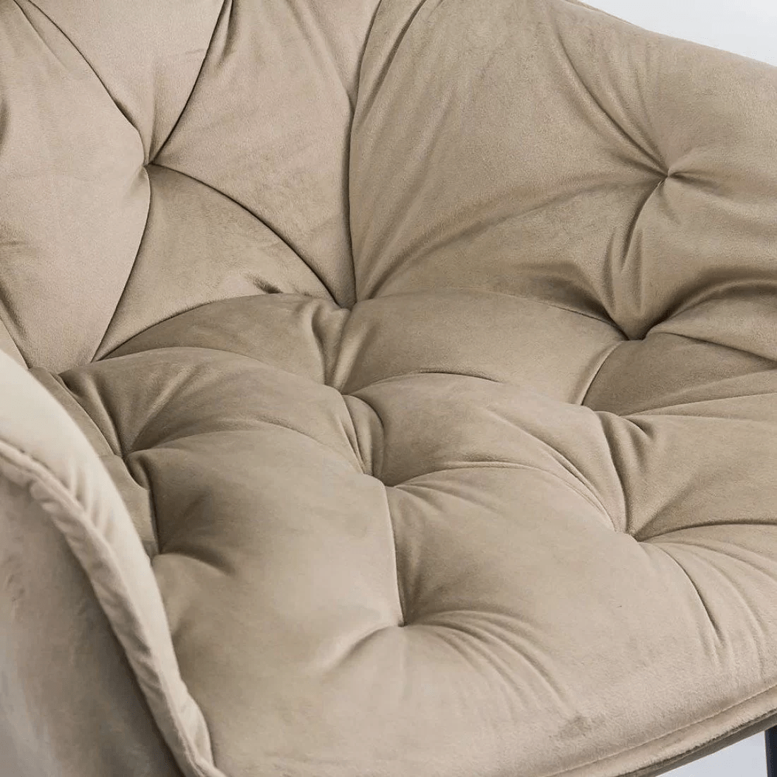 Scaunul de living Ines BUC 257 este o piesă de mobilier sculpturală, definită prin cusături de adâncime ce imită un design floral simetric, oferind estetica unui fotoliu de lux într-un format ergonomic adaptat spațiilor moderne. Proiectat pentru a transforma zona de dining într-un spațiu de relaxare, acest model se remarcă prin geometria de tip „scoică” ce oferă o experiență de ședere protectoare.